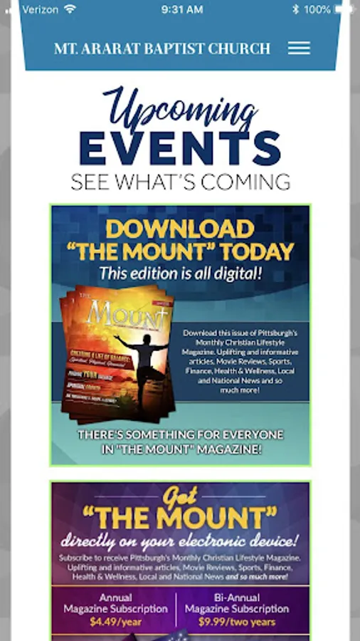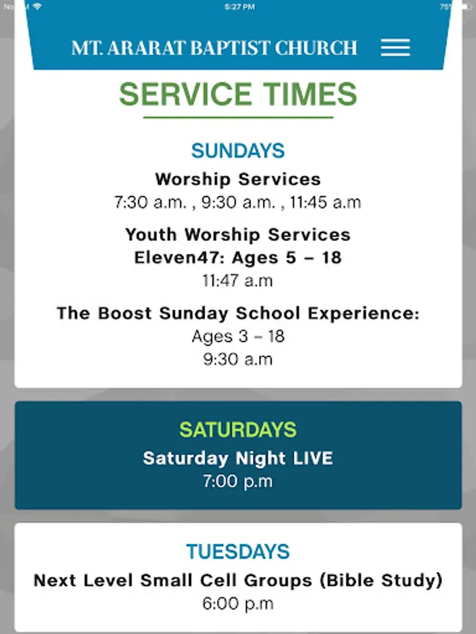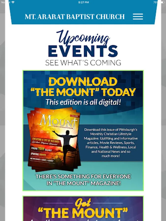 This is the official Mt. Ararat Baptist Church Application for Android devices. Download this FREE App today to connect with Mt. Ararat Baptist Church and experience messages from Dr. William H. Curtis. Watch our services LIVE, listen to music and more. The Mt. Ararat Baptist Church App was created by The Church Online.
