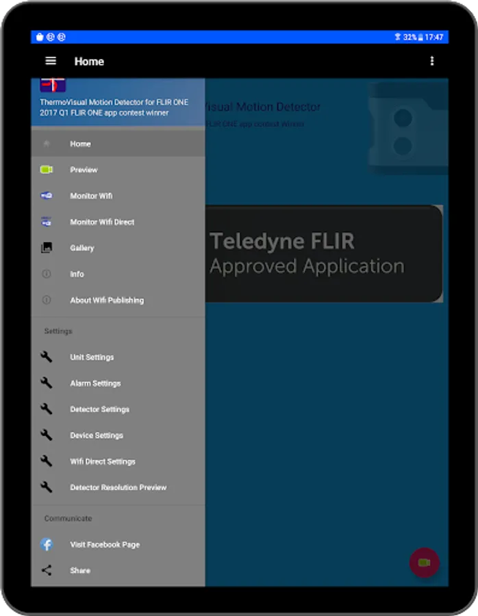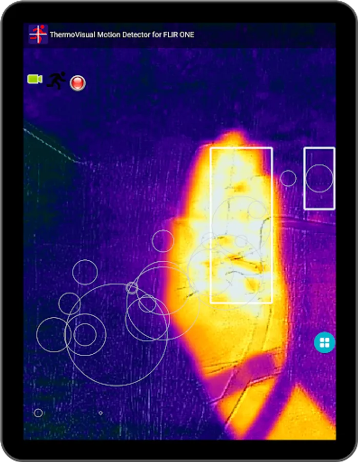 ThermoVisual Motion Detector is an intelligent, easy to use application that detects thermal and/or visual motion or changes automatically by using FLIR ONE infrared camera. It operates in day & night. When you run ThermoVisual Motion Detector, you can observe any motion and/or changes in your FLIR ONE field of view on your screen. In addition, you can set alarms. Alarms could generate sound, makes phone call where available.