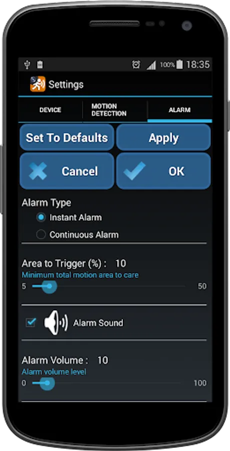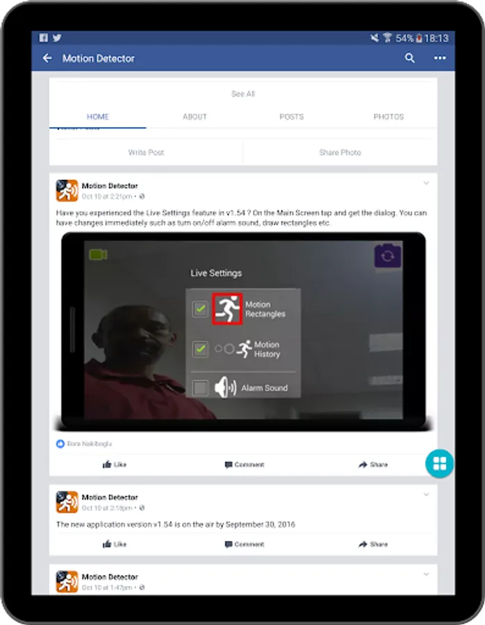 * The main problem with motion detection applications is the shaking of the devices during the observation. These yield false alarms. Motion Detector application has specially designed algorithm to minimize this drawback.