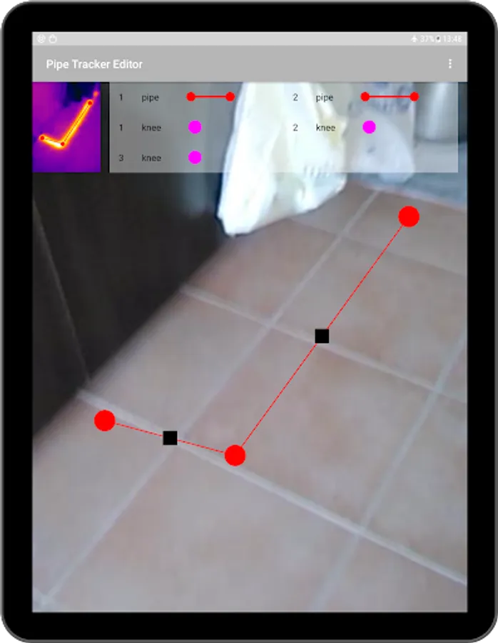 Pipe Tracker will skeletonize (thinning) the pipe thermal image input and will transform the image into piecewise-linear pipe segments form. Pipe segments consist of smaller lines and connection nodes.