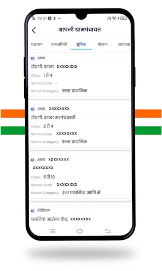 - Contains list of different facilities which are available in that gram panchayat.