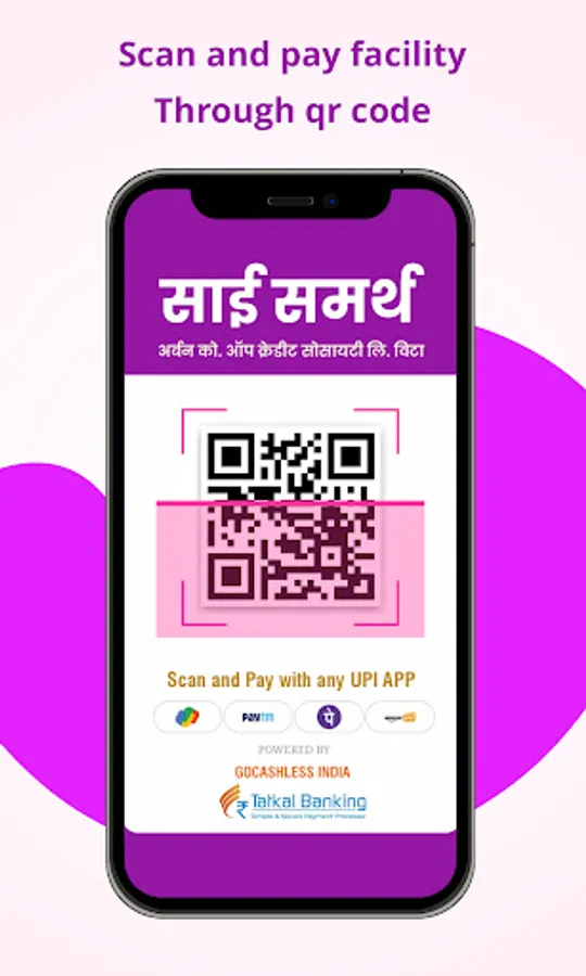 SAI SAMARTH UPI APP is fast, secure and reliable UPI app. Users can send payment using UPI PAYMENT option or Scan any recipients UPI QR code. Users can collect payment using there VPA (Virtual Payment Address) with voice notification alert. Users can also send payment over recipient’s mobile number using PAY TO CONTACT option.