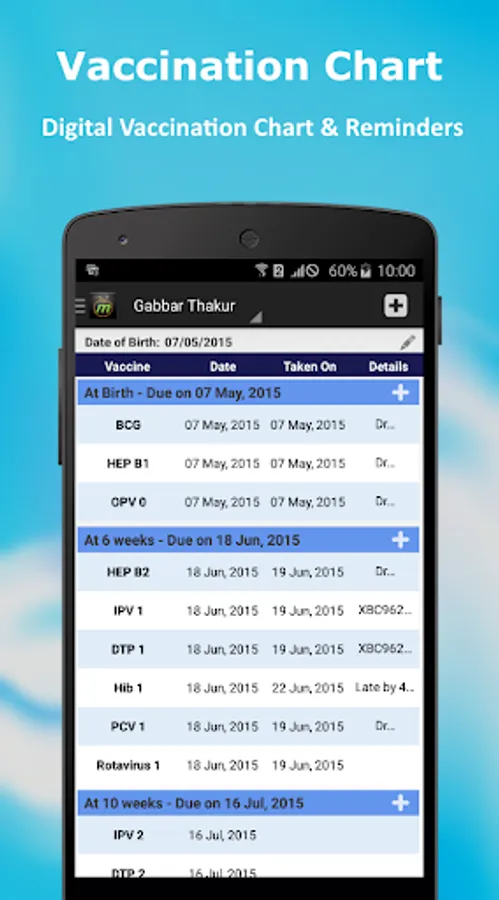 - Vaccine Schedule & Vaccine Charts - enter DOB & create vaccine chart & get vaccine reminders
