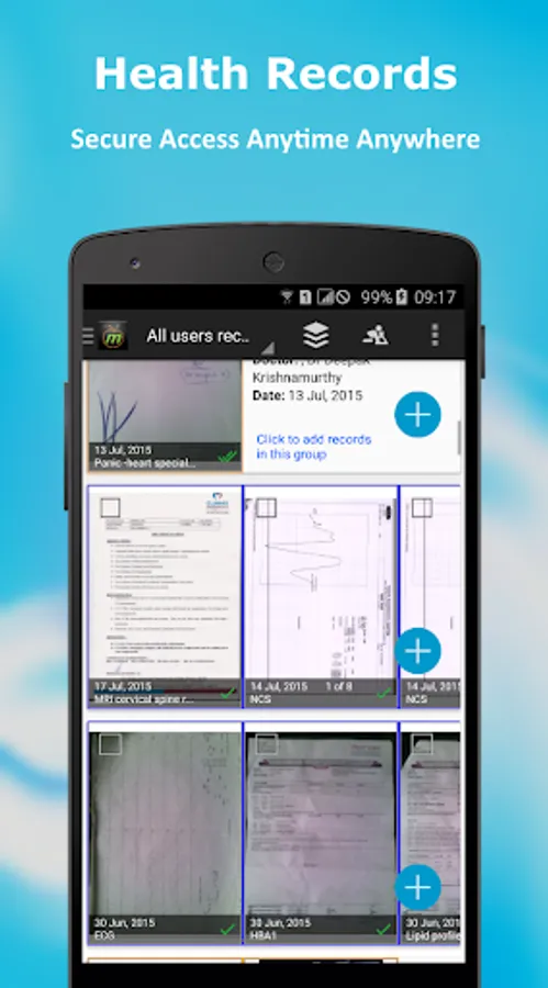 ○ Upload medical record, bills, investigation-reports etc. in groups