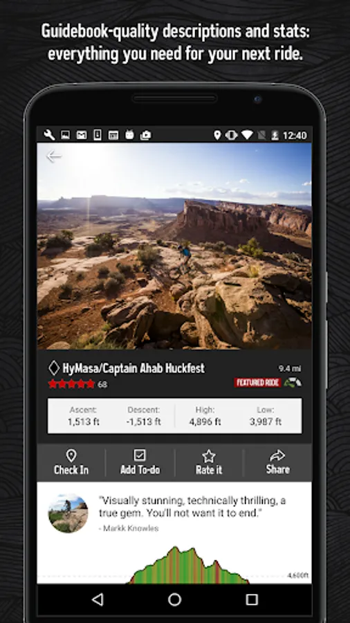 With the thoroughness of a printed map, we offer full GPS route info, elevation profiles, interactive features, photos, and more. Like a guidebook, we suggest the best featured rides to explore—either near your current location or in an area you search for. Local experts show you the highlights, challenging features, and insights you need to plan a great ride.