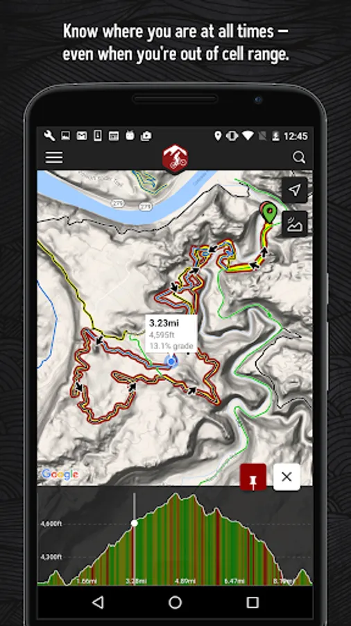 • Downloaded trails work offline for when you’re off the grid. (No cell reception required!)