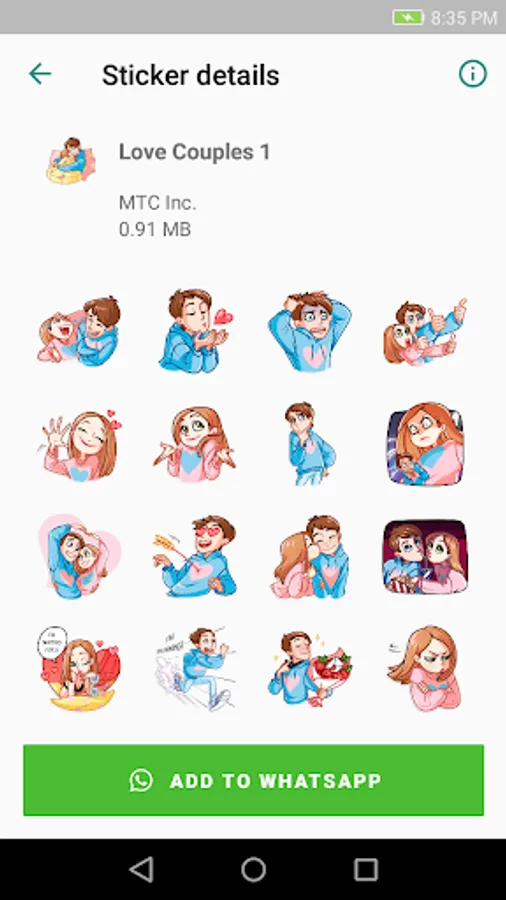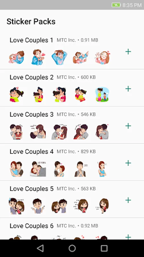 Love Stickers for Whatsapp contains all sorts of stickers ordered in different categories.