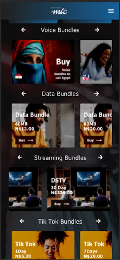 “MyMTC Namibia” provides prepaid and contract customers with an easy-to-use, convenient portal to manage your mobile needs. Check your airtime and bundle balances, and purchase bundles.