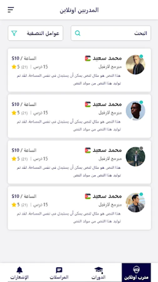 - Searching for teachers in a specific discipline in general (for example: English language, programming, or Java programming).