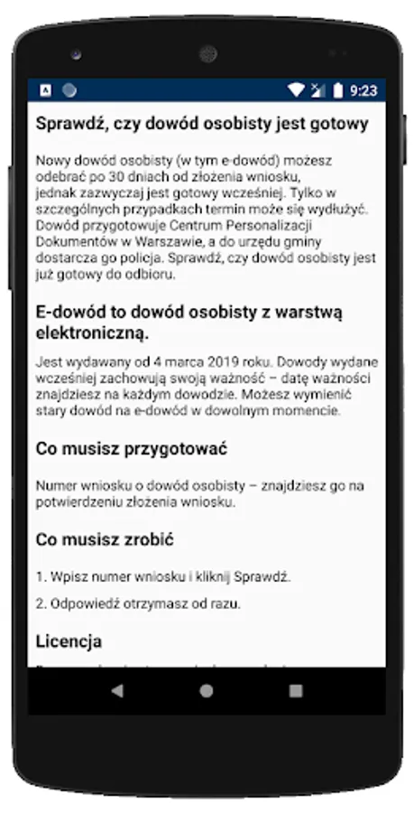 The service of the Ministry of Digitization "Check if the ID card is ready" is available at https://www.gov.pl/web/gov/sprawdz-czy-dowod-osobisty-jest- ready "and released under" Creative Commons Attribution 3.0 "license -" https://creativecommons.org/licenses/by/3.0/en "