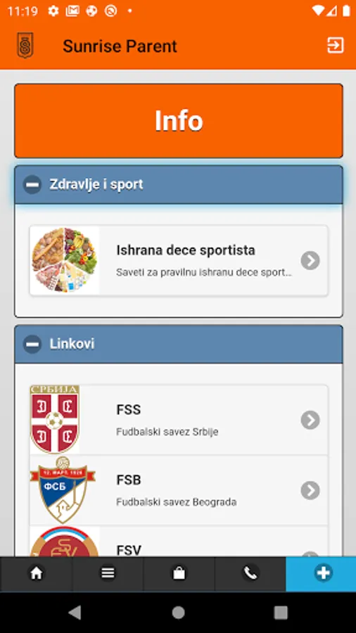 Sabac Sunrise Parent allows parents to monitor the child's upcoming obligations in the sports club (matches, trainings), attendance at trainings and matches, financial obligations to the club, electronic receipt, contact with coaches ....
