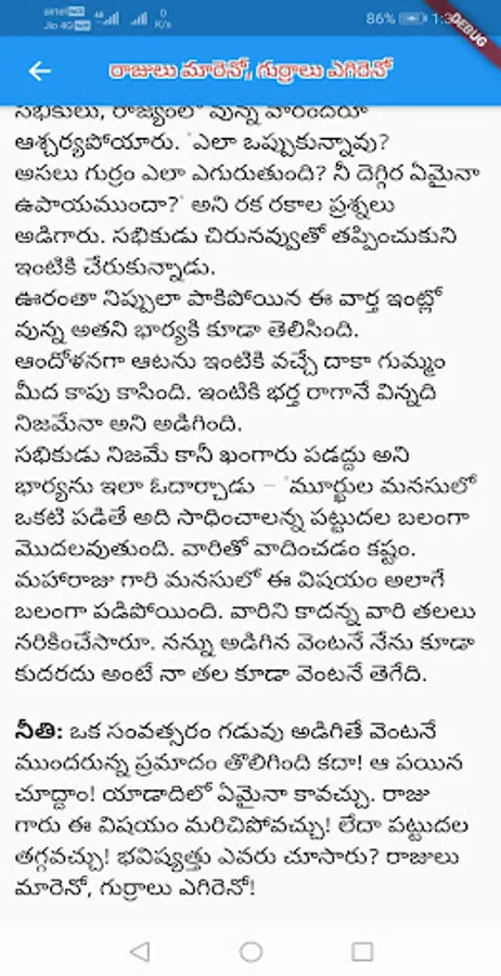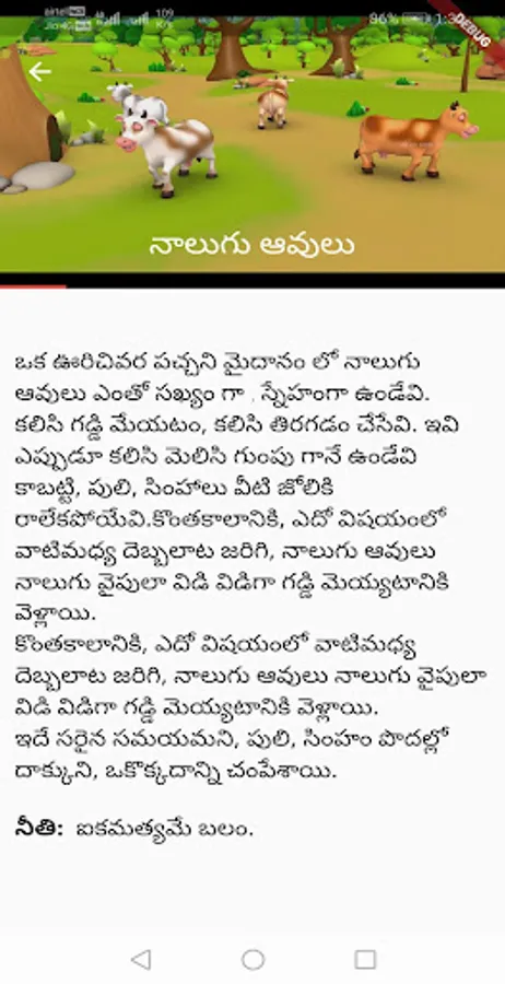 Telugu moral stories is a bunch of small easily understandable "Telugu stories" with moral flavors like happiness, friendship, sportiness, helping others, self-respect, study value, money value, human relationships.....