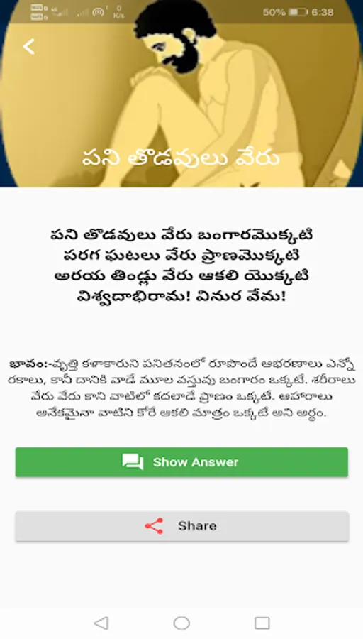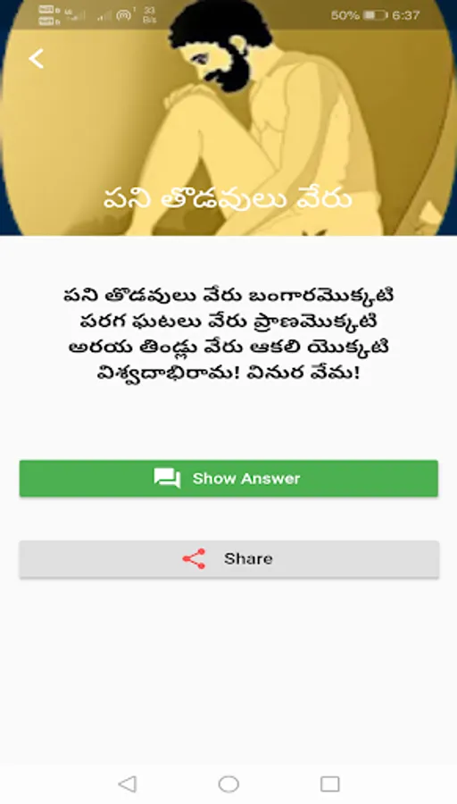 So All Telugu People can read and Learn Telugu Vemana Padhyalu.They Can carry Vemana Satakam with them anywhere in This mobile application Vemana Padhyalu. And They can read Vemana pDhyalu Anytime without requiring internet connection. This application works in Offline mode also.