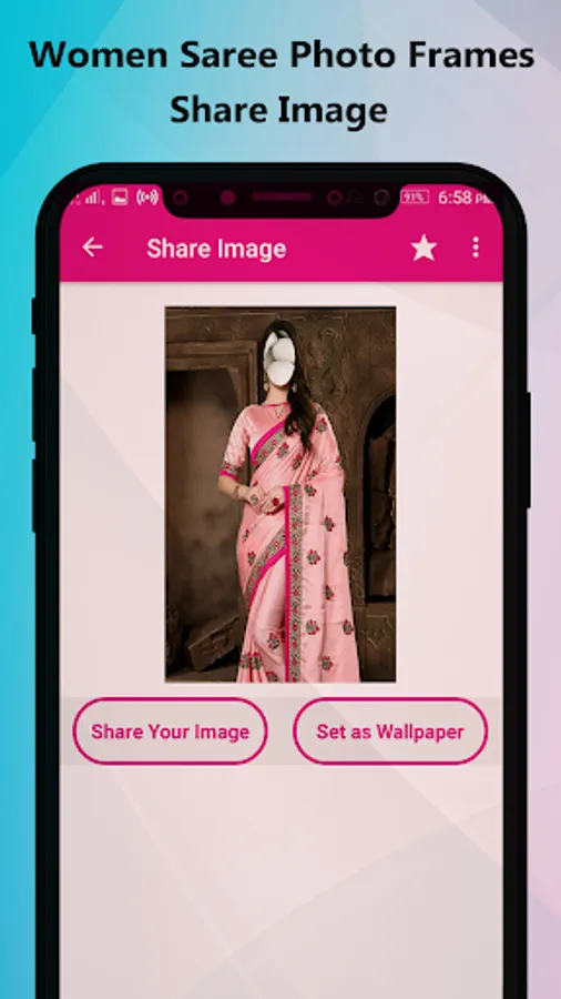 The Women Saree Photo Frames when we edit the frame by selecting the image after saving it, we can also add to favorites and we can set the edited image as wallpaper.