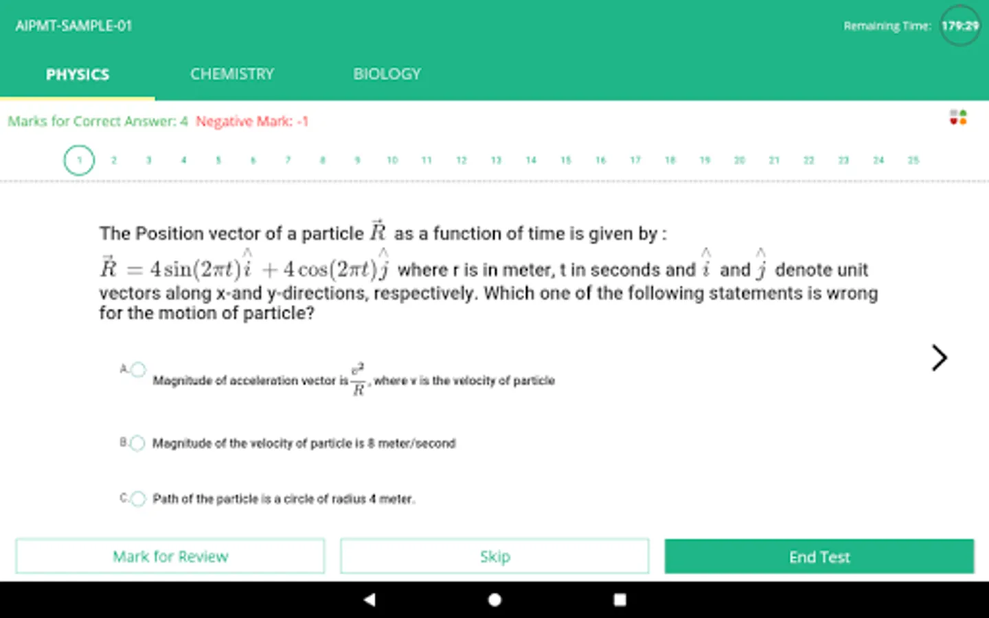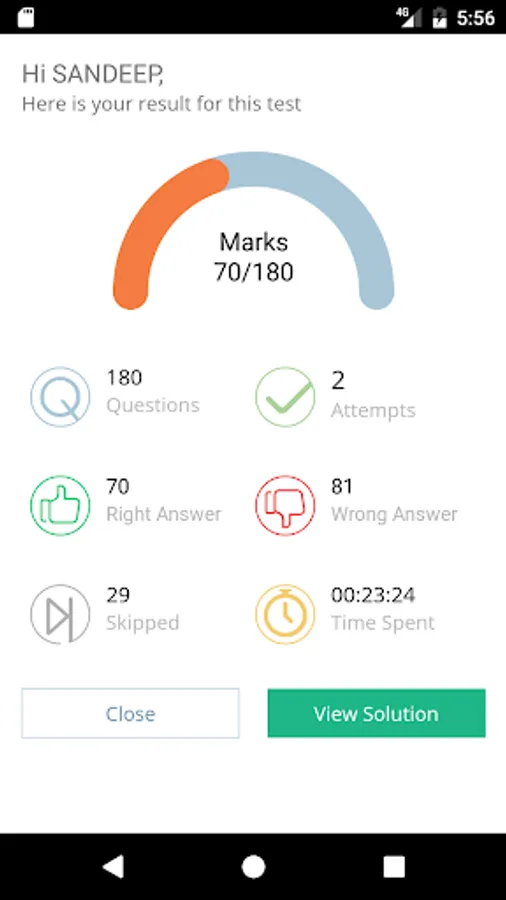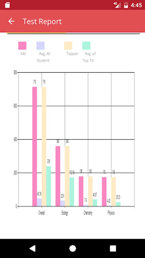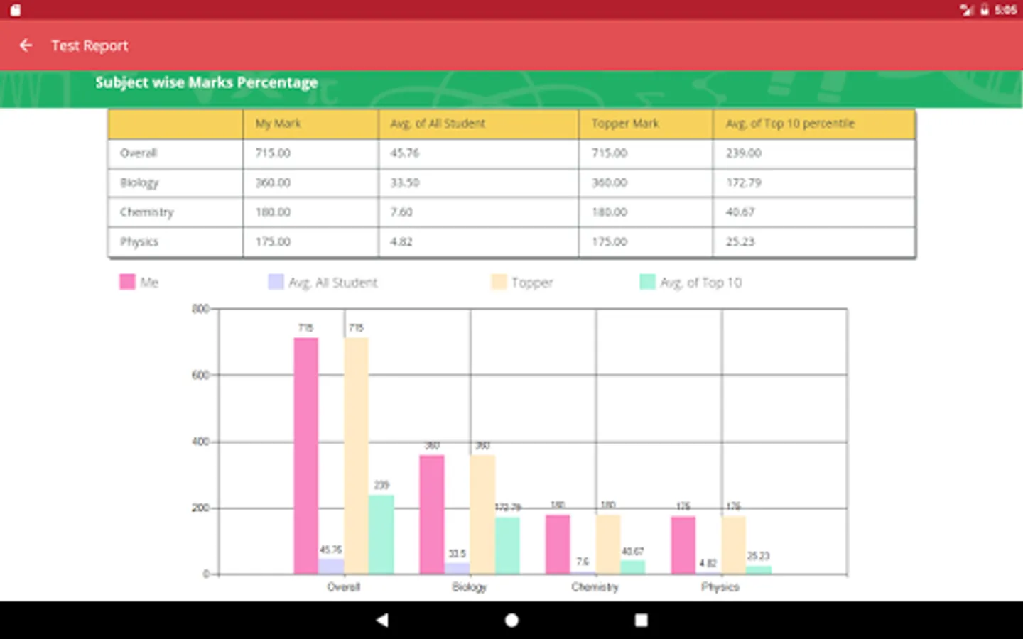 At the end of each test students get a detailed diagnostic test report with complete analysis. The report among other details lists-
