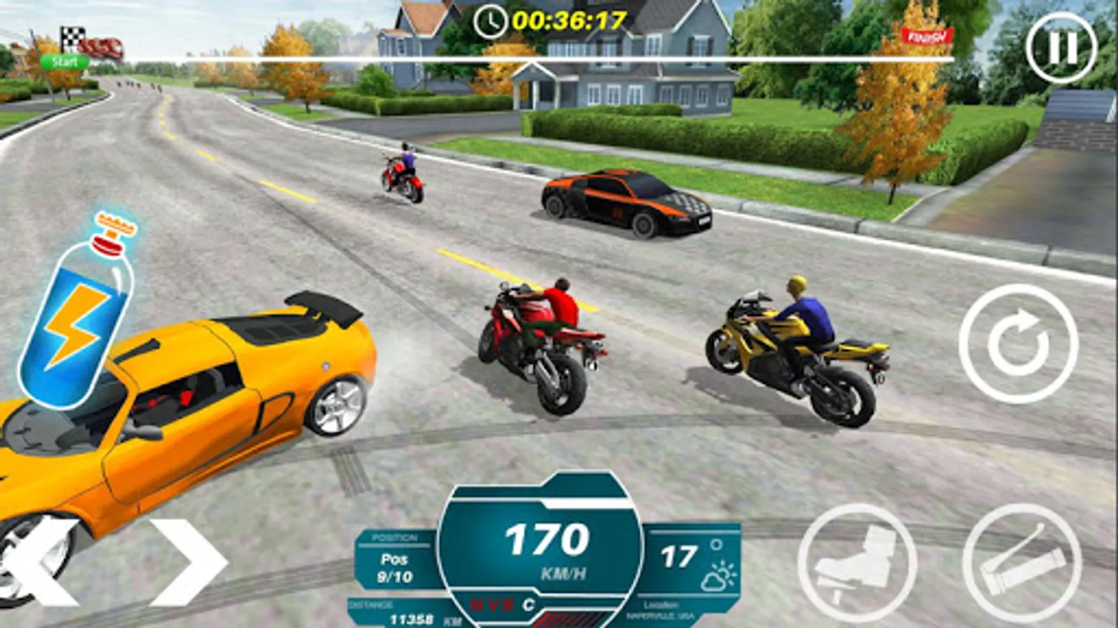 Welcome to the freakiest motorbike racing game in the city of Naperville. Pick & tune your speedy bikes on the racing tracks to beat your rivals around the world. Enjoy extremely impressive graphics & face your rivals with the great speed. Burn up the tracks with the fastest racing game trending on Android. Take on the challenge & reach impossible speeds by expert timing gear changes & bursts of nitro. Racers! Beat up the highest score to set a new speed record in Bike Racing! Hey, Racers, this the time you can create a title in a new bike racing genre records!