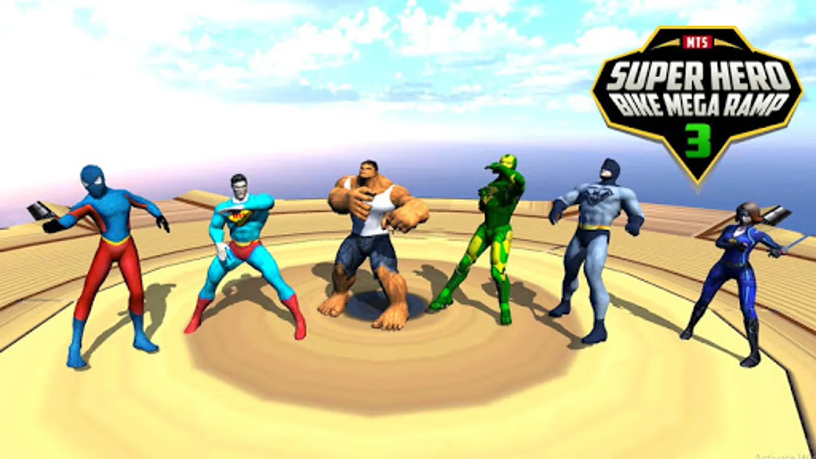 Welcome to a new season of Super Hero Bike Mega Ramp 3 with an amazing racing adventure ahead!!! Play with the legendary superheroes on impossible mega ramps & perform freestyle stunts with unique racing bikes. Eager to see all the superheroes in one screen?? Well, the game play is to choose your Super Hero & race across on different mega ramps. It's a timer based game played so, drive your motorbike on the ramp towards the city & once you enter, you will have to perform tasks or achieve targets in each level.