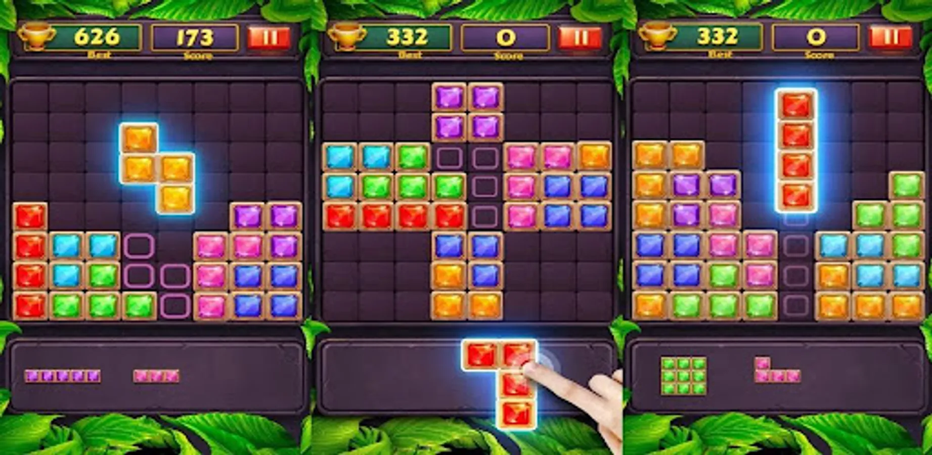 The puzzle game Block Puzzle - Jewels World is well-known and fantastic. Drag and drop the pieces to fill the vertical and horizontal lines, at which point the entire line will be cleared. The game will be over if there isn't room on the screen for the provided block. To increase your points, try to clear more lines