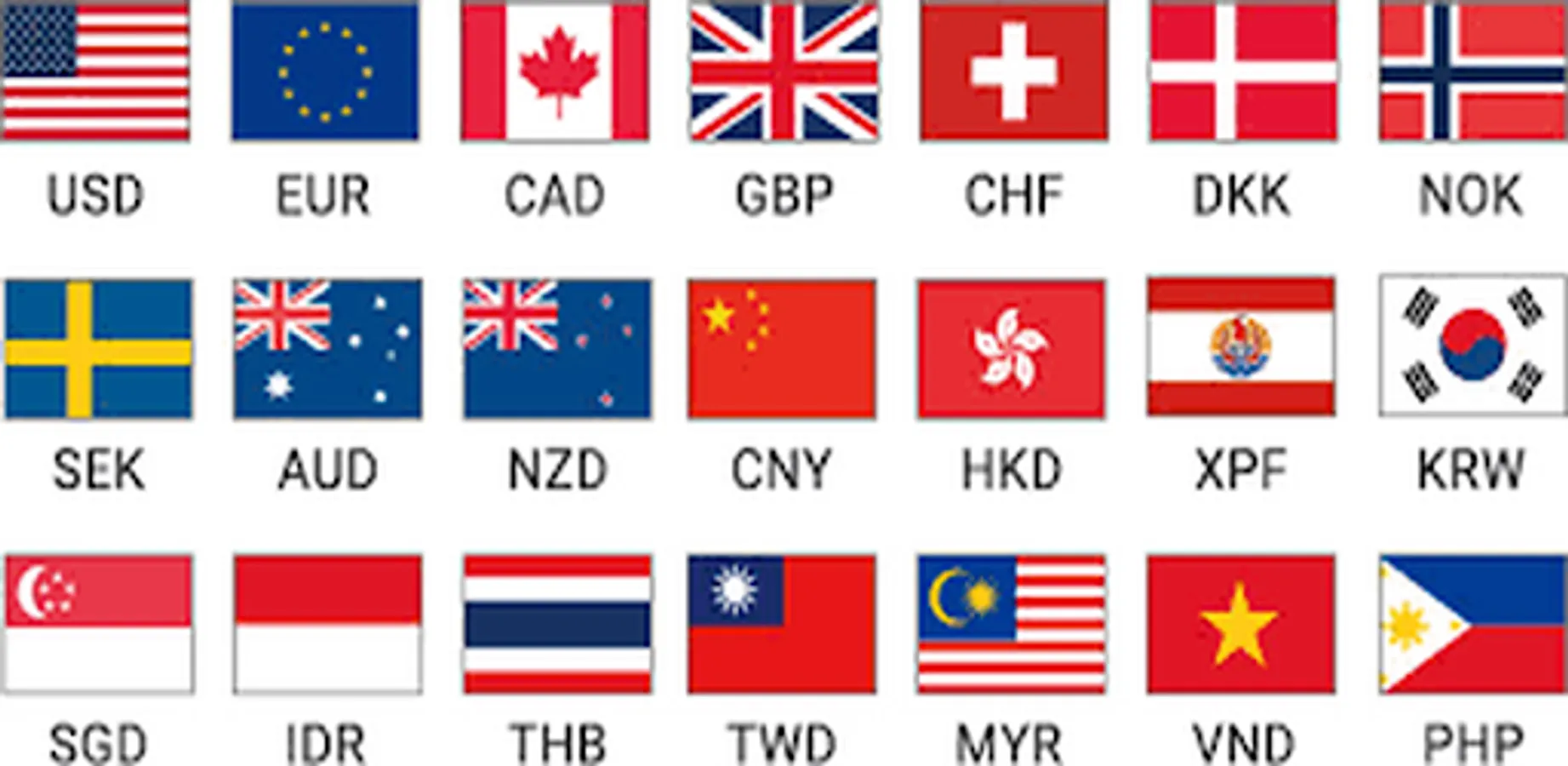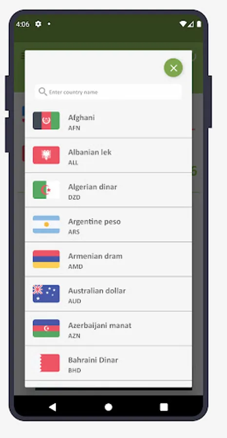 Supports currencies for every country including the dollar, euro, pound, yen, yuan, won, franc, ruble, dinar, peso, rupee, shilling, rial, kwacha, dirham, florin, guinea, krona, krone, riyal, colon, som, leu, virtual currencies like Bitcoin, plus precious metals like gold, silver, palladium, platinum and more.