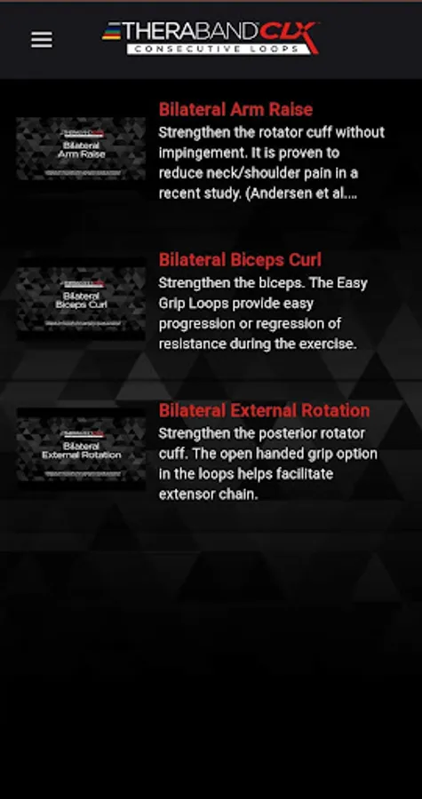 The FREE TheraBand CLX App provides a CLX exclusive exercise library featuring unique support tools to enhance any rehab or training program.
