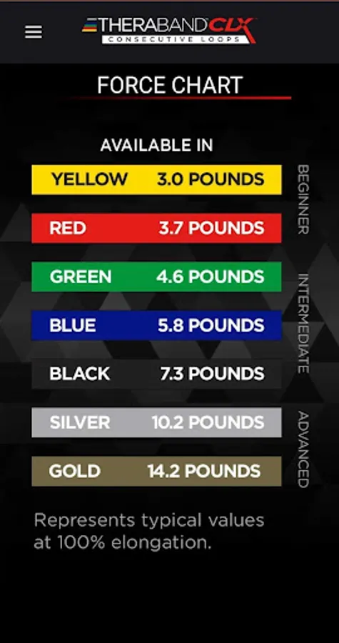 Not sure what the resistance level is on your CLX. Our trusted TheraBand progression chart can show you what resistance level you are on while looking at any exercise.
