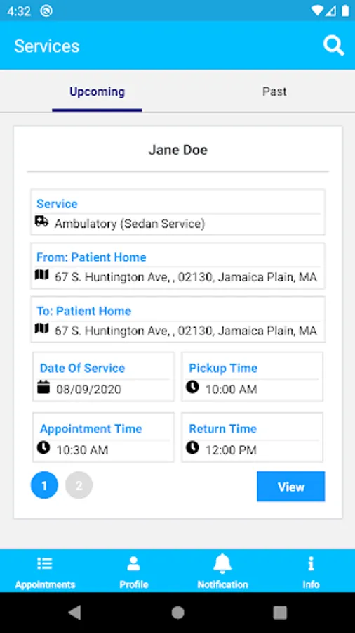 - View upcoming appointments