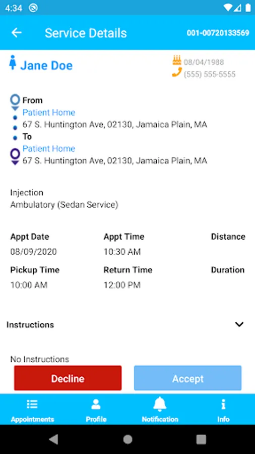 - Accept/Deny assigned appointments