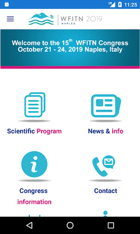 The official app of the 15th Congress of the WFITN which will take place from 21st to 24th October 2019 in Naples, Italy