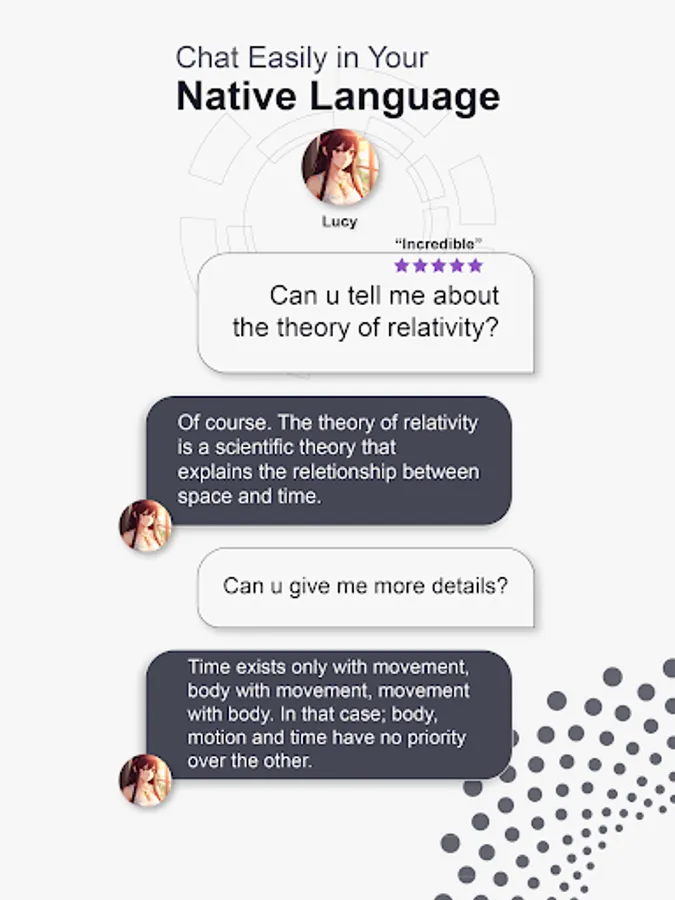 You can find the answer to every question you have in ChatAs: Ai Chat & Character Ai & Ai Roleplay Chat. Whether you're a scientist who wants to write an article, a student who needs help with homework, or just someone who wants to chat with a friend. Thanks to advanced artificial intelligence, everything you are looking for is in this application.