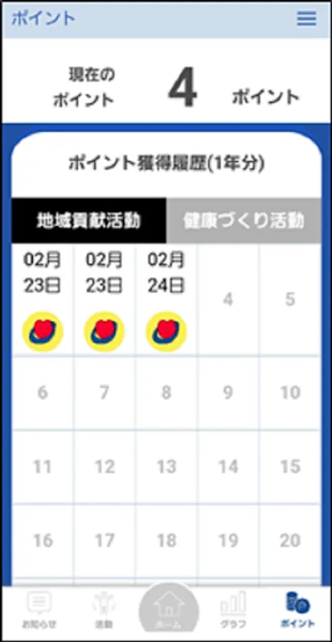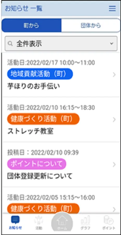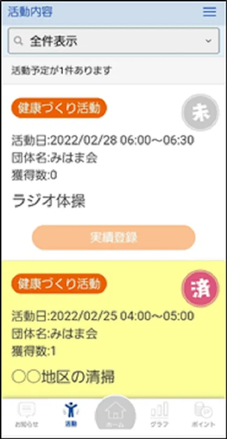 You can easily accumulate points by simply scanning the QR code, and you can exchange the accumulated points for activity incentives on your smartphone screen. In addition, you will receive more and more notifications from registered groups and towns, and you can also apply for participation in activities from the app! You can also see local gymnastics in Mihama Town, so please use it to improve your own health!