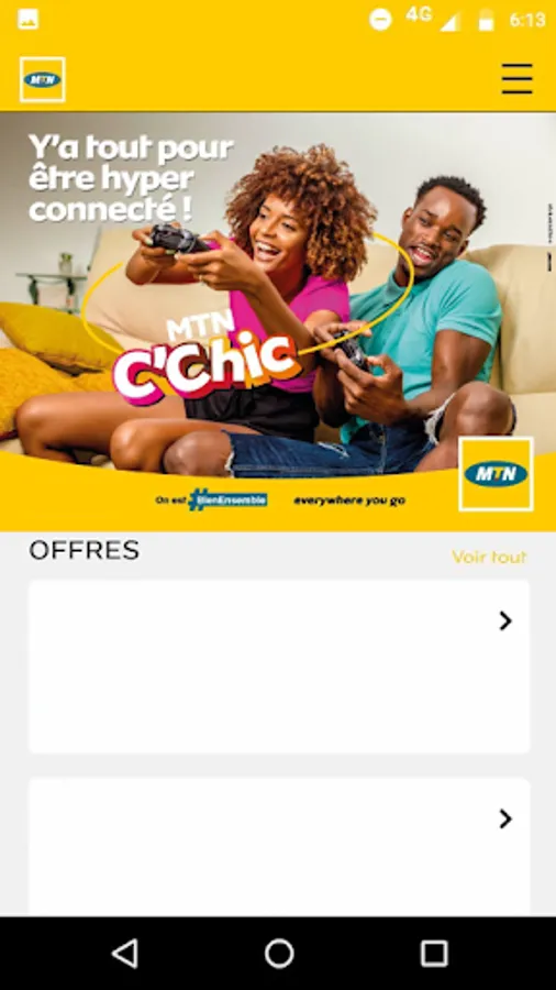 Y’ello! Welcome to the world of MTN C’CHIC. The first application for an offer intended exclusively for young people from the Ivory Coast. MTN C’CHIC allows you to find the best plans to have fun and build your future. The application provides real-time access to all events concerning Ivorian youth, both in terms of training and entertainment. It allows you to get to know and access the vast network of C’CHIC partners and thus benefit from several discounts, freebies and surprises. MTN C’CHIC was designed to make your life easier and help you spend less while getting the best deals. Download! Have fun ! Train yourself!