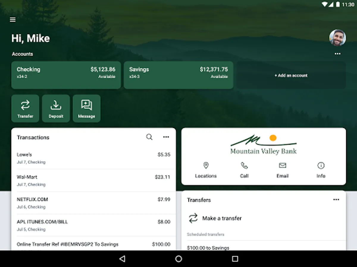 To use the Mountain Valley Bank Dunlap TN app, you must be enrolled as a Mountain Valley Bank digital banking user. If you currently use our Internet Banking, simply download the app, launch it, and login with the same Internet Banking credentials.
