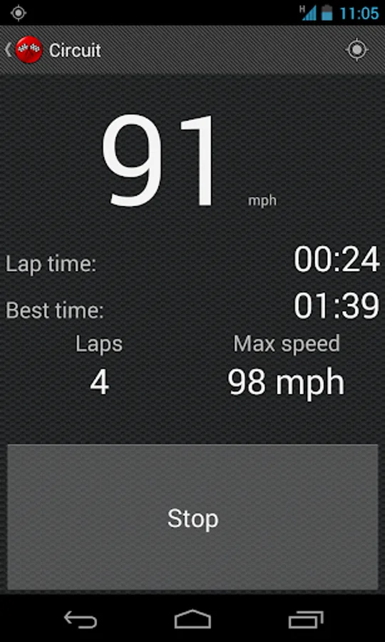 •Lap time: you will be asked to set the start/finish point, and every time this position is detected, a new lap will start. At the end, you'll have some statics: