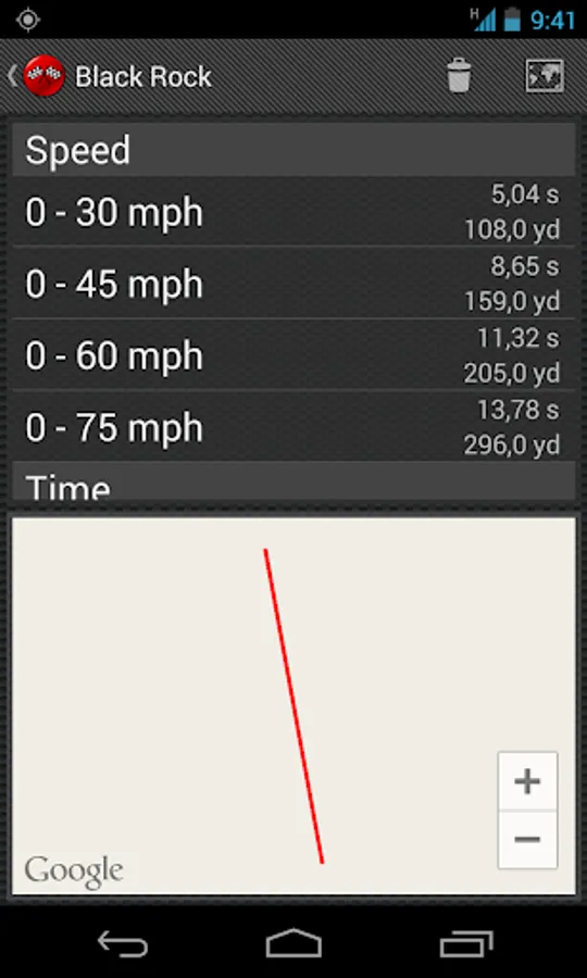 Once you finish a test, you'll see your results with some statics and a map with your route. You could save all the results to check your own records whenever you want.