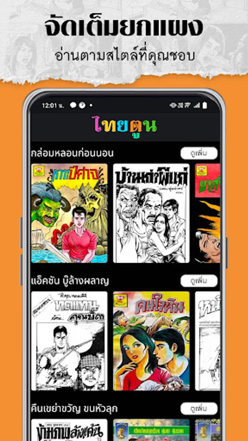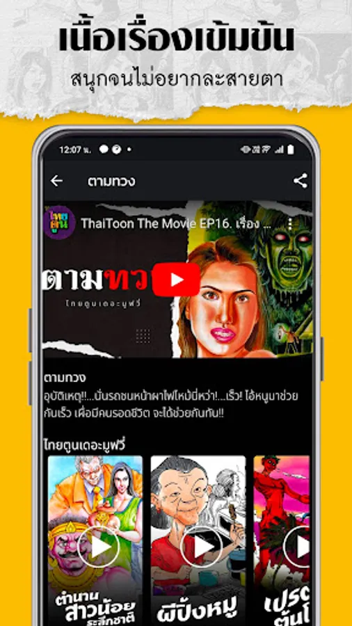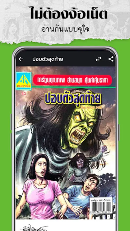 Thai cartoons with unique sharp lines Eye-catching bright colors and storytelling in many Thai styles, including life stories, ghosts, jokes,