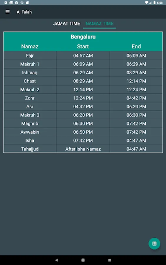 Al Falah, Namaz Timing, Qaza T Screenshots