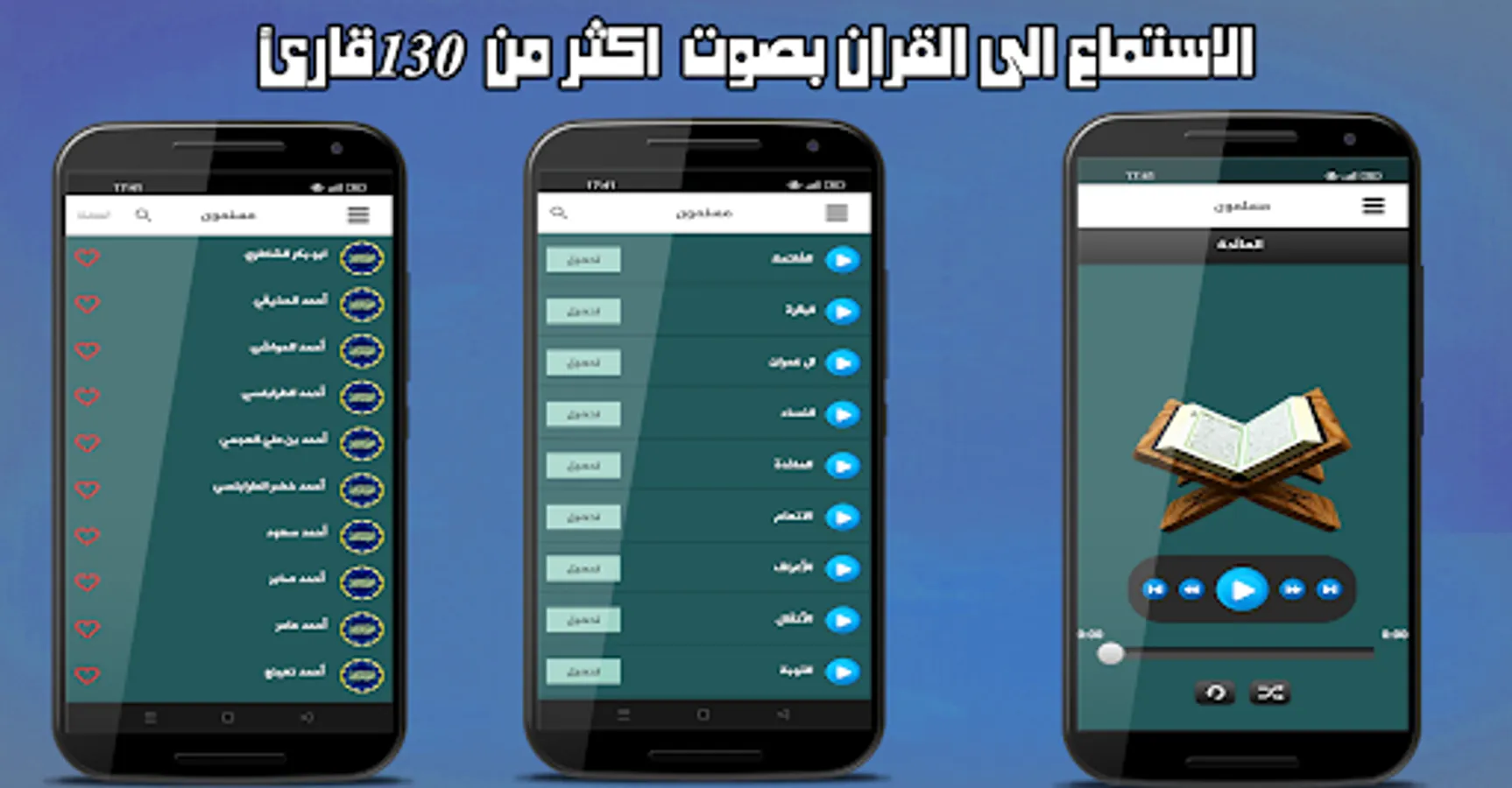 Where it contains the Noble Qur’an with the voice of more than 130 reciters of the Holy Qur’an, such as the reciter Sheikh Abdul Rahman Al-Sudais, Abdul Basit Abdul Samad, Mishary Al-Afasy Islam Al-Subhi, Hazza Al-Balushi, Abu Bakr Al-Shatry and many other reciters