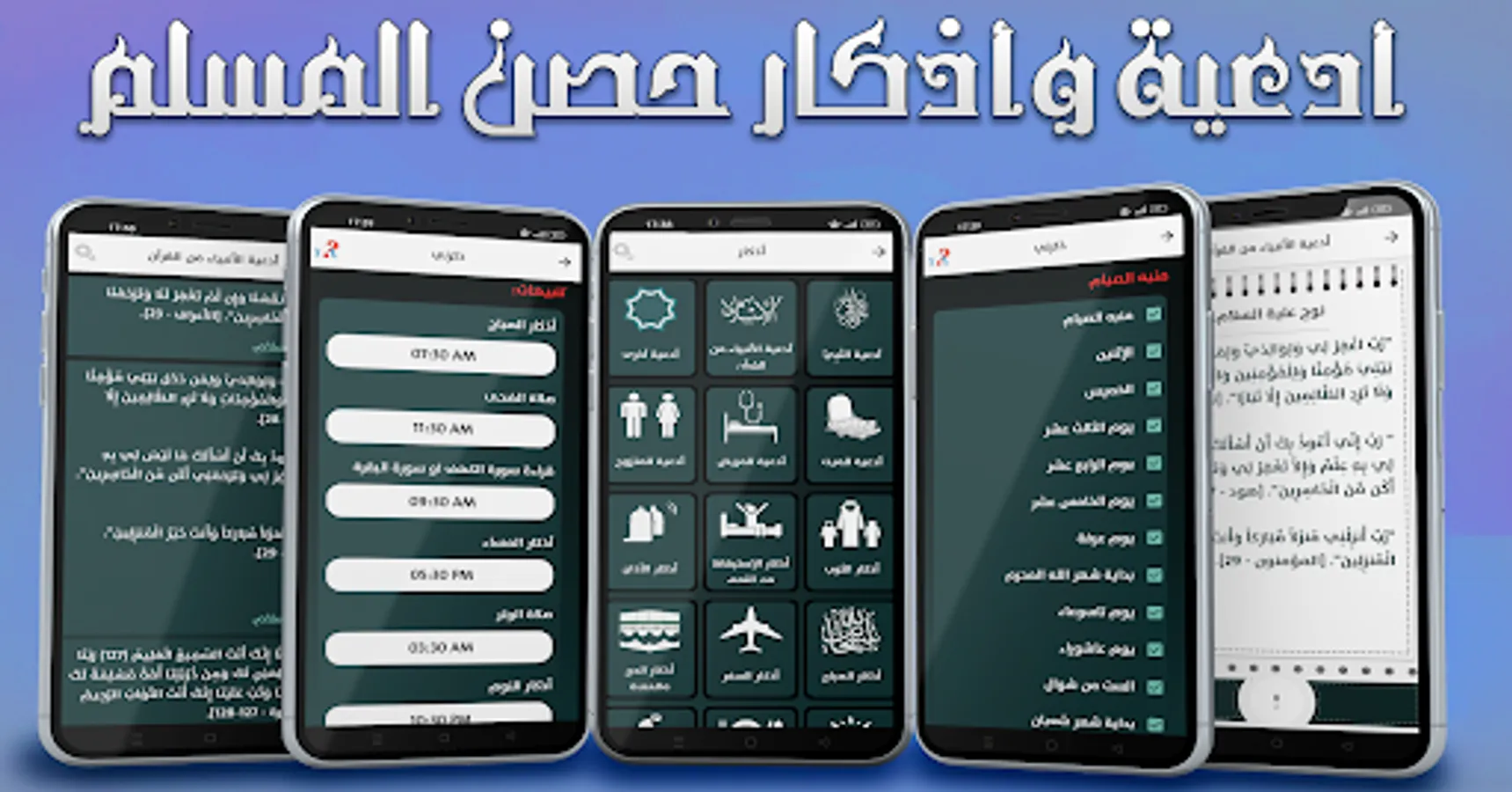 Such as morning remembrances, evening remembrances, great remembrances, supplications of the Prophet, remembrances of the house, remembrances of the call to prayer, remembrances of the mosque, remembrances of prayer, remembrances of ablution, inclusive supplications, supplications for the dead, food remembrances, Friday remembrances, sleep remembrances, the virtues of the Qur’an, the supplication for the conclusion of the Qur’an, The virtue of supplication, the virtue of dhikr, legal ruqyah, etc...