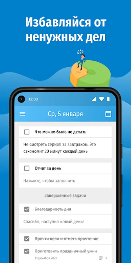 If every day you take at least one action on your goals, then you will move forward with great speed. A brief report for the day will allow you to understand whether you managed to stay focused on your goals today. Don't forget to praise yourself for your productivity as well.