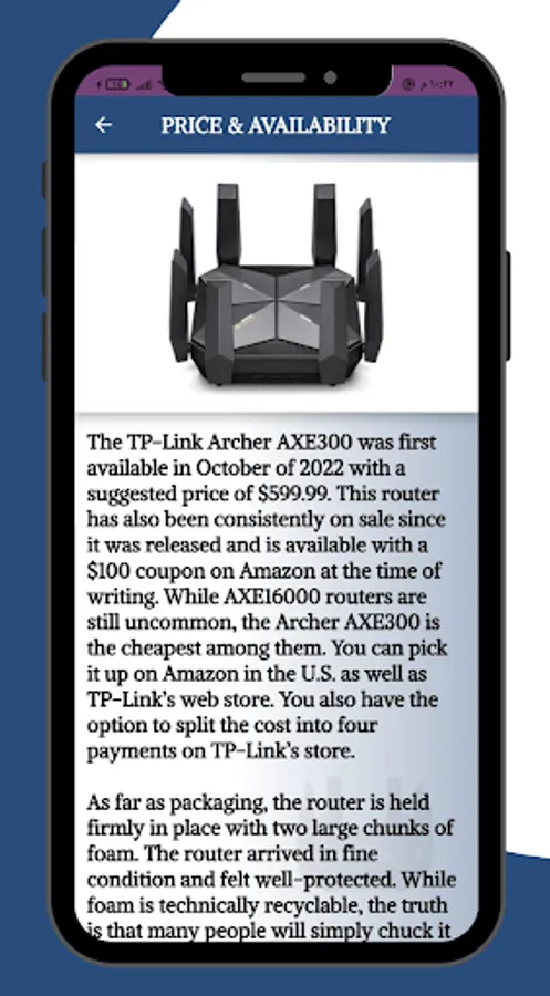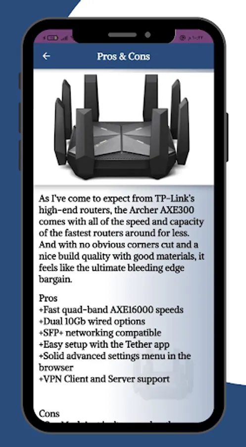 In TP-Link AXE300 Wi-Fi Guide app we supported many sections of content that will let you now more information about TP-Link AXE300 Wi-Fi.