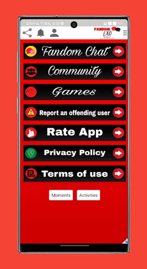 - EXO Fan Community section where you can communicate with EXO fans in a private chat