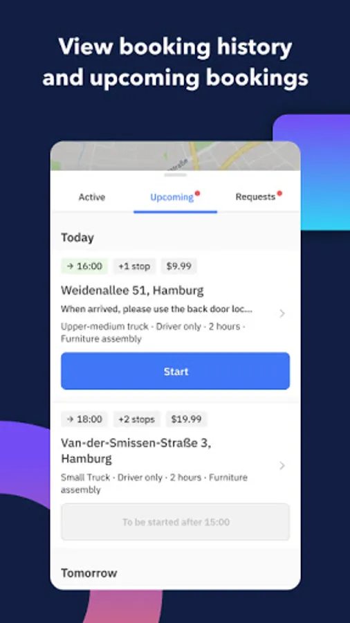The app can be used after entering the corresponding company id. Get notified of new booking requests and upcoming jobs. Go online to instantly receive new booking requests, start navigating to the next address and complete jobs with an easy to use interface