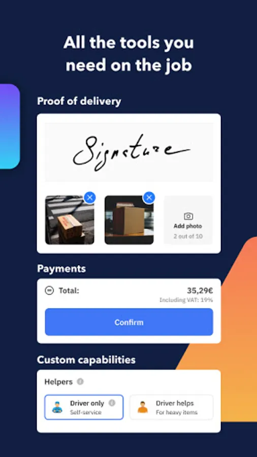 MotionTools features adapt to the requirements of your business: custom capabilities, collect signatures, attach pictures for each stop or handle fast and secure payments.