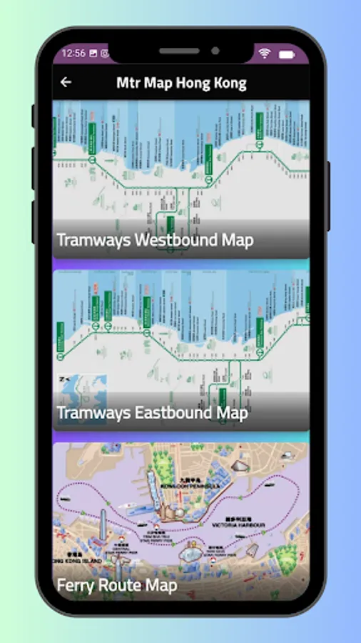 The app provides a comprehensive set of maps for various transit types in Hong Kong, including buses, the metro, railways, trams, and more, all sourced from official channels.