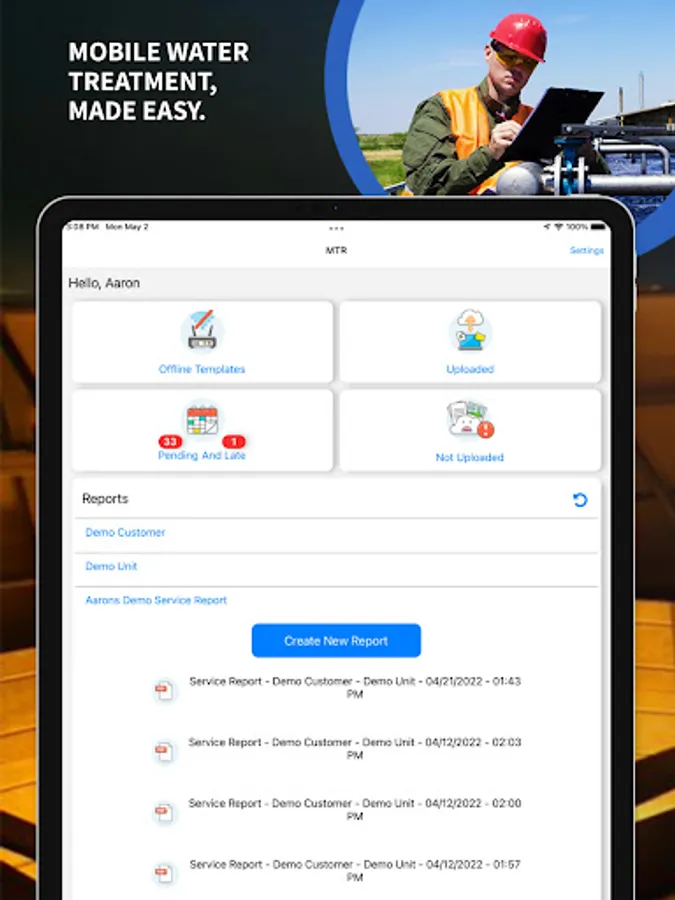 MyTechReports (MTR) mobile app allows you to connect to the MTR database servers remotely using your iOS device to create reports, view reports, and email completed reports. Supported reports types are Service, Log, Corrosion, and Technical Notes data as well as pictures to provide high quality cloud-based reporting.