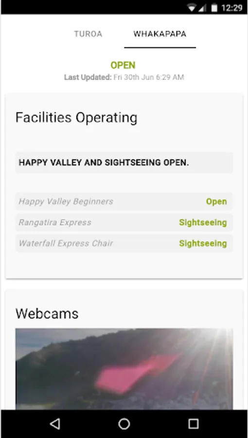 The Mt Ruapehu Snow Report app delivers Whakapapa & Turoa snow reports, weather & webcams straight to your mobile phone. Check lift and road status or view webcams before heading to the ski areas.