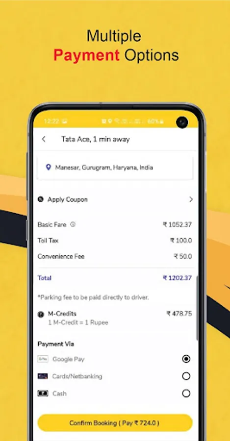 • Multiple payments mode, choose from Google pay, net banking, cards and cash