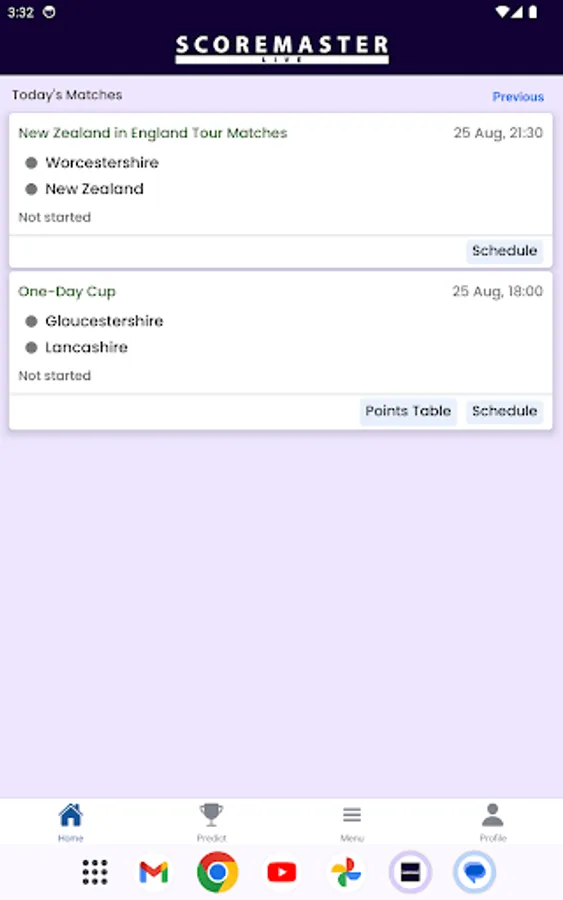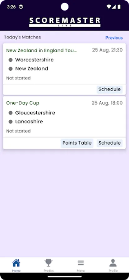 ScoreMasterLive, a score-centric app, designed to keep you connected to the live scores of matches and provide an engaging platform for prediction contests within groups.