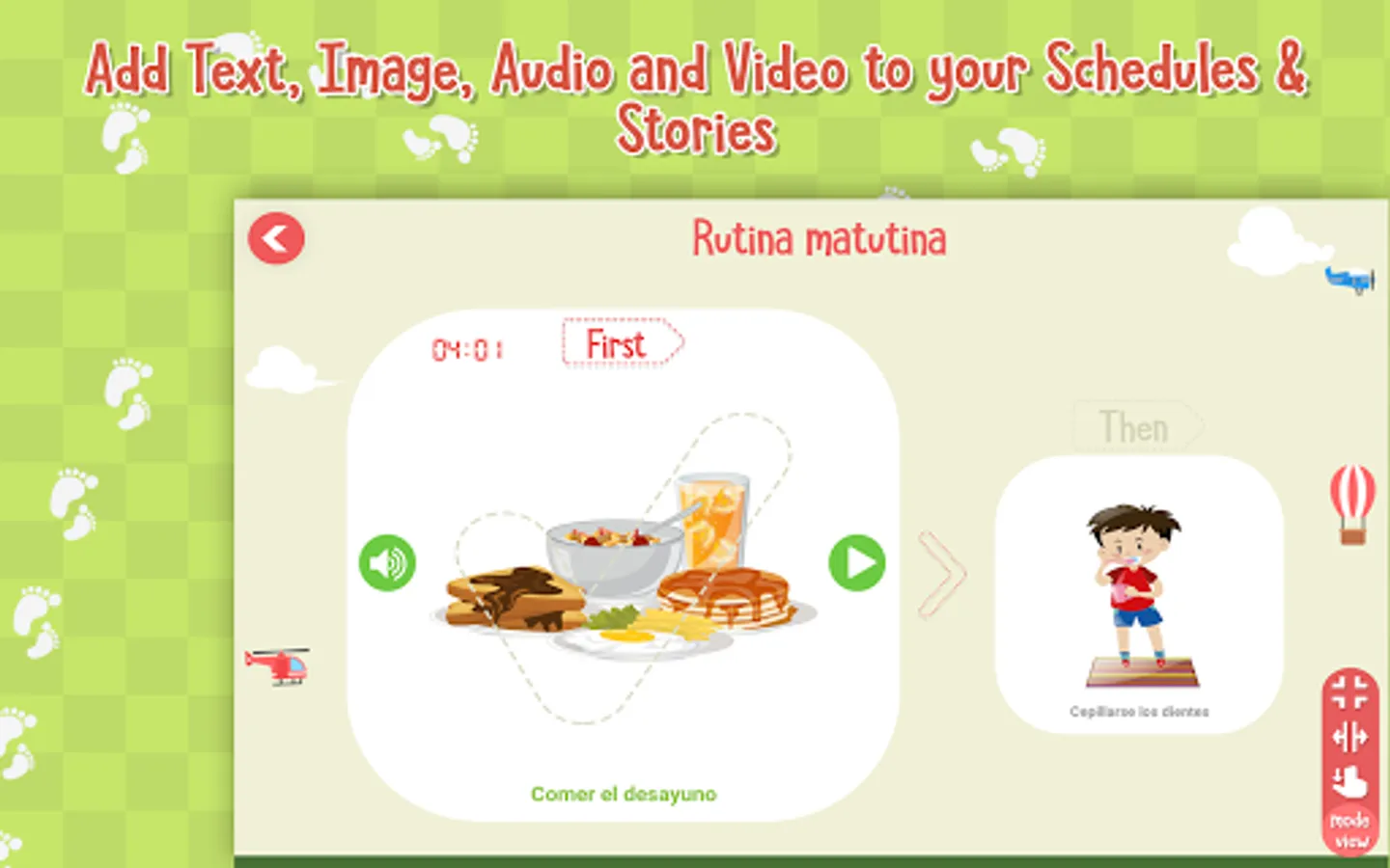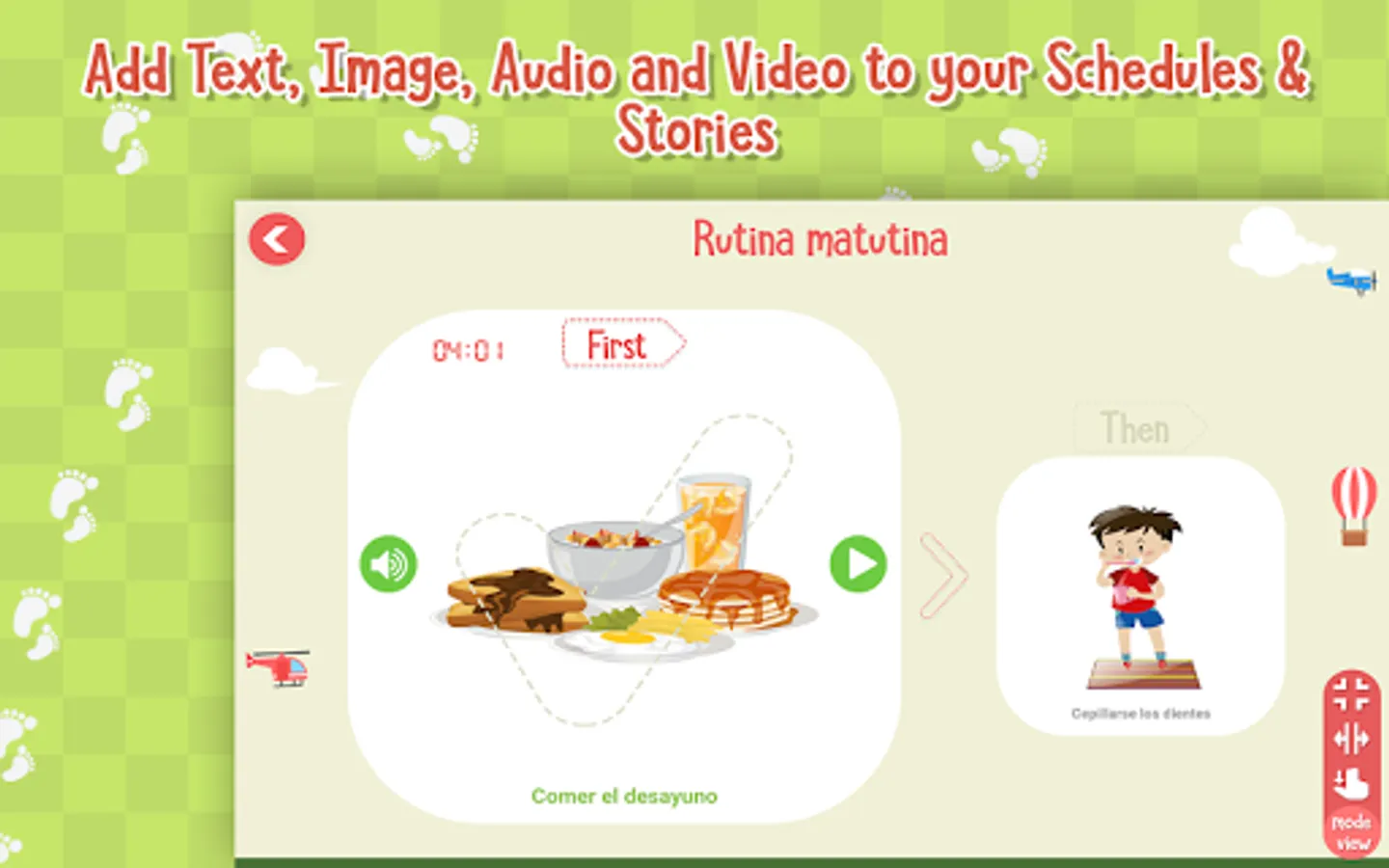 • Option to add Text, Image, Audio and Video to each step of a Schedule And also to each page of a Social Story.