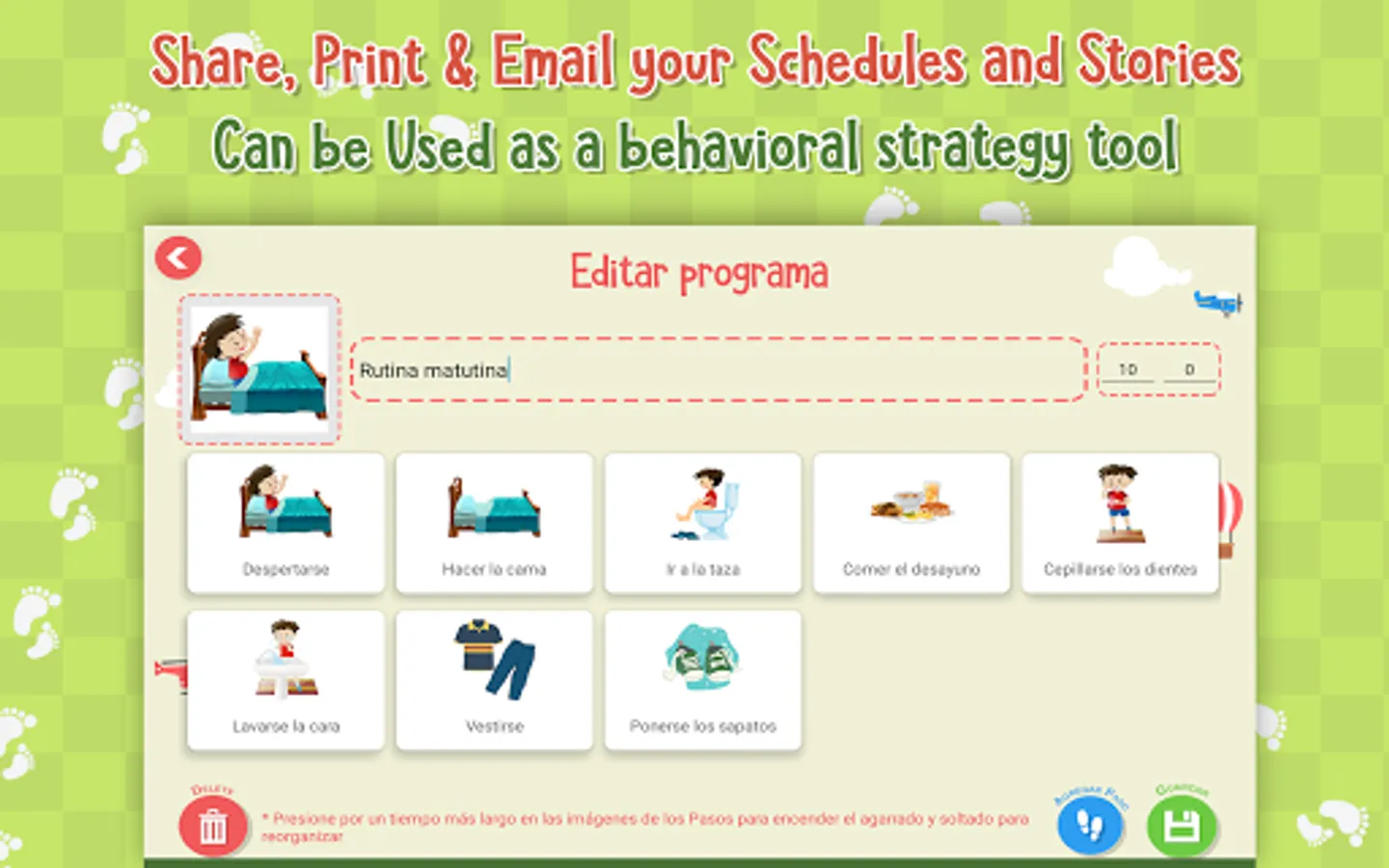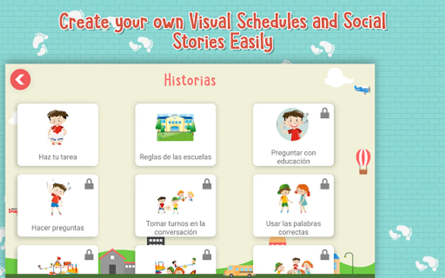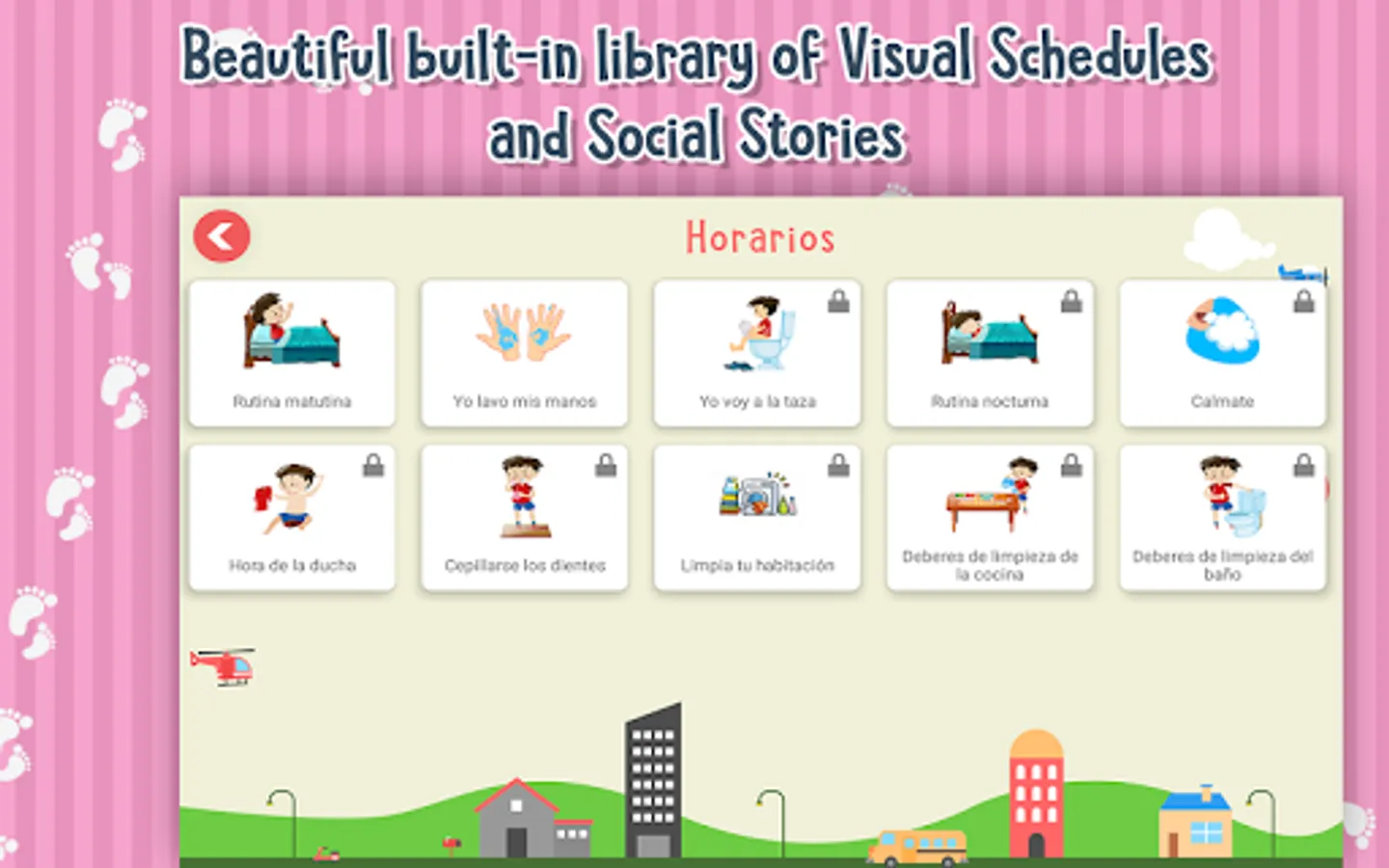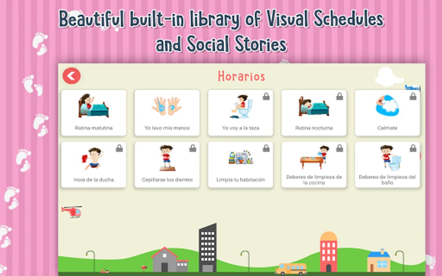 • Beautiful built-in library of Visual Schedules and Social Stories